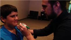 Daniel H. caught a Jelly Baby candy dropped from 120 high in his mouth.