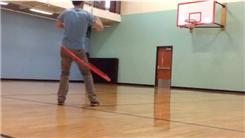 Pete Moyer made a successful basketball shot from 37 feet while hula hooping.