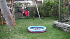 Longest Jump From A Swing Into A Paddling Pool While Wearing A Watermelon Helmet