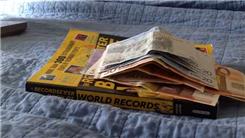 Pete Moyer put one 500 Euro bill, seven 50 Euro bills, four 20 Euro bills and one 5 Euro bill on a RecordSetter Book Of World... (more)