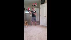 Brendon B. completed 143 catches juggling three balls in 30 seconds while standing on one foot.