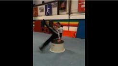 Michael L. performed 18 circled flares on a gymnastics pommel mushroom.