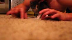 Jacob tapped his fingers 80 times in 10 seconds while playing with a kitten.