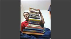 Damien W. balanced 60 books on his lap for eight minutes, 8.90 seconds.
