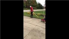 Mike Hout rode a unicycle 30 meters while pulling a 3-year-old boy in a wagon.