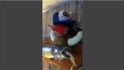 5smashley5 stacked five hats on a taxidermied fish's head in 30 seconds.