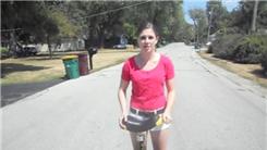 Sam Alex picked up 10 pieces of litter while riding a unicycle. She set the record to earn extra credit in her Social Work class.
