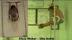 Alicia Weber performed five L-position ring dips in one minute with five-pound ankle weights on both of her legs.