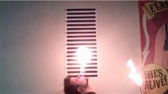 Ryan Stock blew a flame from his mouth reaching 31 inches in height. NOTE: Holding fire in the mouth is extremely dangerous and... (more)