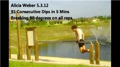 Alicia Weber completed 91 consecutive bar dips in five minutes.