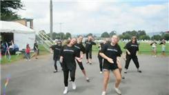 Dan Clancey and 12 members of his group wore "Dance With Me" t-shirts while dancing.