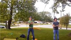 Pete Moyer juggled three two-pound balls in a Mills Mess pattern while hula hooping for 14.43 seconds while his friend juggled... (more)