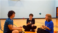 Pete Moyer, Spencer Renfro and Jillian Roach juggled while sitting Indian style.