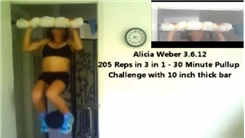 Alicia Weber completed 205 pull-ups on a thick bar during a 30-minute 3-in-1 challenge. Pull-ups are to be completed in this... (more)