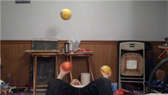 Most Catches Juggling Three Five-Pound Balls While Lying Down