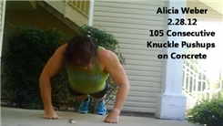 Alicia Weber completed 105 consecutive knuckle push-ups on a concrete floor.