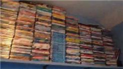 Lacey Flynn placed 477 DVD's on wall-mounted shelves.