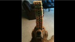 Alton Bollom balanced 50 dog treats on the nose of Carson, also known as "Jenga Dog."