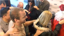 Sean Sonic and eight other people danced in a conga line behind him. He led the conga line while dressed as Santa.