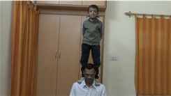 Daksh Choudhary stood straight on his father’s shoulders for one minute, 37.69 seconds.