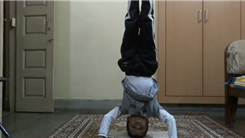 Daksh Choudhary recited the English alphabet 12 times while doing a headstand.