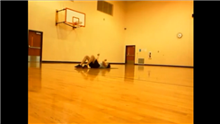 Pete Moyer made a successful behind-the-back basketball shot from 21 feet away.