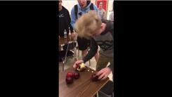Drew M. smashed six apples on his head in 10.91 seconds.