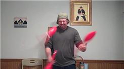 Kyle Petersen completed 117 catches juggling three clubs while hula hooping and balancing on a rola bola.