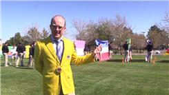 Most Tennis Ball Bounces On A Tennis Racquet While Riding A Pogo Stick