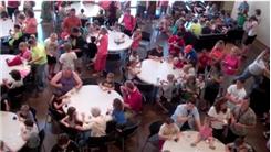 430 people in Oklahoma joined together and rang blue cowbells while eating Blue Bell ice cream.
