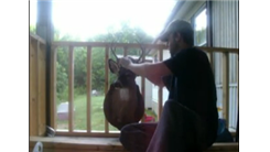 Andy Pelphrey assembled a ketchup packet tower eight packets in height on a mounted deer head.