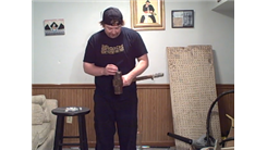 Brian Pankey stacked 32 American pennies on a 15-pound sledgehammer held in his hand.
