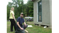 Andy Pelphrey bounced a baseball off of the side of a building while his wife, Crystal Pelphrey, caught it in a fishing dip net... (more)