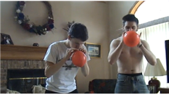 Josh Graber and Thomas McGinniss blew up balloons, knotted and popped them by sitting on them in 8.50 seconds.