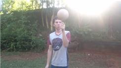 Brendan Kelbie spun a basketball on the tip of a pencil on a bowling pin held in his hand for 12.53 seconds.