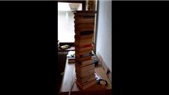 Jens H. stacked paperback books in a tower 37.4 inches in height.