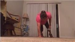Alicia Weber performed 25 one-arm gliding plank jacks with bean bag catches in one minute, 16.57 seconds.