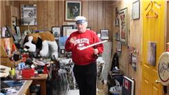 Doug McManaman balanced eight golf balls on a pole on his chin for 56.38 seconds while seated on the floor.