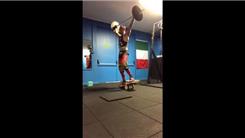 Record Setter lifted a 70.5-kilogram (155 lb.) barbell while performing an overhead squat on a balance board.