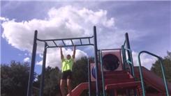 Alicia Weber performed 56 consecutive strict chin-ups on a thick bar.