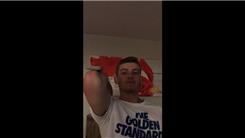 Michael T. performed an overhand volleyball serve into a basketball hoop from 44 feet away.