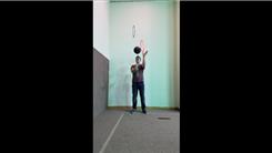 Andrew T. completed 56 catches juggling four rings while spinning a basketball on a mouthpiece.