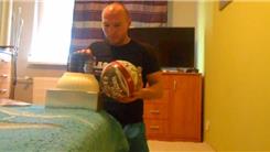 Pavol Durdik stacked 48 CDs on a ball in 30 seconds.