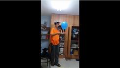 Avi H. bounced a balloon 270 times on alternate sides of a table tennis paddle while balancing a book on his head.
