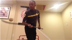 Nigel bounced a hockey ball on a hockey stick for one minute, 38.00 seconds while kneeling.