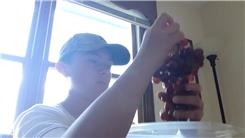 Noa O. launched 14 pine cones over water using a tennis racquet. He is six years old.