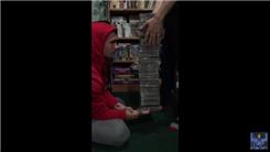 Andrew M. balanced 66 CD cases in his hand.