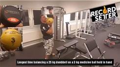 Longest Time Balancing A 25-Kilogram Dumbbell On A 3-Kilogram Medicine Ball On Palm