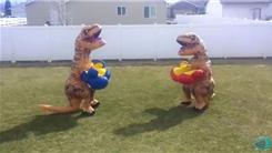 Most Inflatable T-Rex Costumes Worn While Wearing Oversized Boxing Gloves