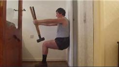 Longest Wall Sit While Holding 3.2-Kilogram And 4.5-Kilogram Sledgehammers In Each Hand At Arm's Length